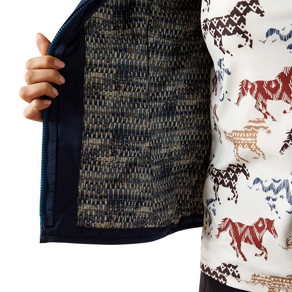 Stay warm and stylish with the Ariat Ashley 2.0 Insulated Vest. This updated version features lightweight Cool Climate Insulation™ for warmth without bulk, while a fresh, country-inspired quilting pattern gives a modern twist to the classic design. The vest is tailored for a flattering fit through the body but allows freedom of movement, making it perfect for riding, outdoor activities, or everyday wear. Designed with practical details like a two-way front zipper to prevent bunching in the saddle and a unique printed lining, it blends function and fashion seamlessly.