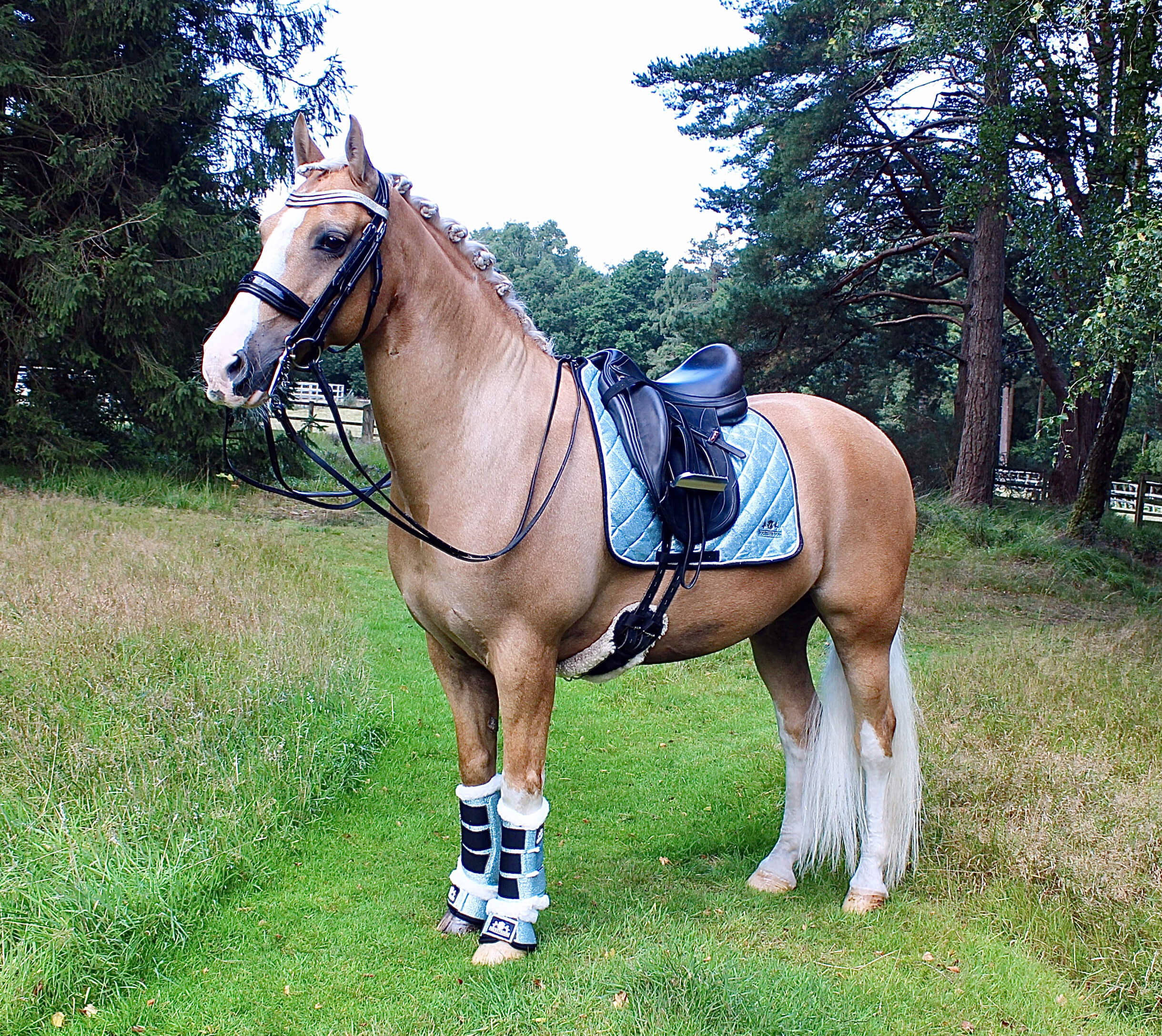 Light and dreamy, these sparkling baby blue bell boots are an excellent choice if you are looking for a fun, yet elegant color for your horse!