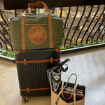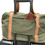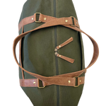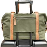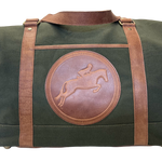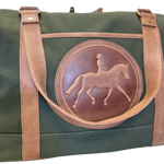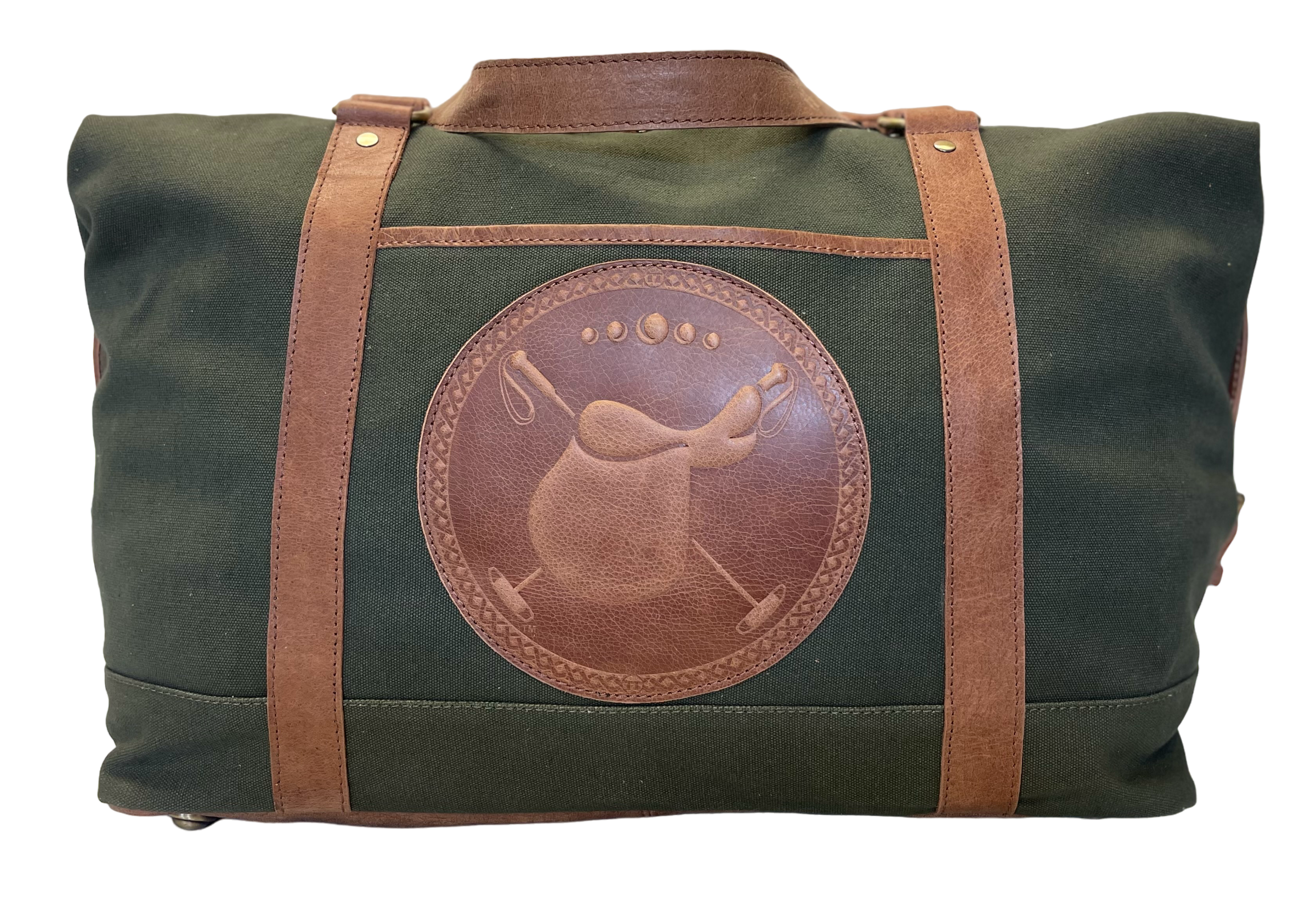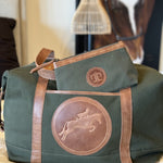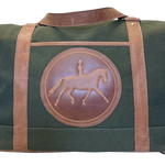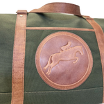 Introducing the Tucker Tweed Equestrian Barn Duffle, made with garment-dyed heavy duty canvas, featuring two-tone, eco-friendly remnant leather accents. Responsibly and resourcefully made by hand, this is the perfect duffle to complement the barn bag. Generous in size, this overnight option is ideal for show season or a weekend away. Durable and practical with reinforced stitching, this duffle features an interior zip pocket, adjustable and removable shoulder strap and an exterior pocket located on our "trolley" sleeve to attach easily to rolling luggage.