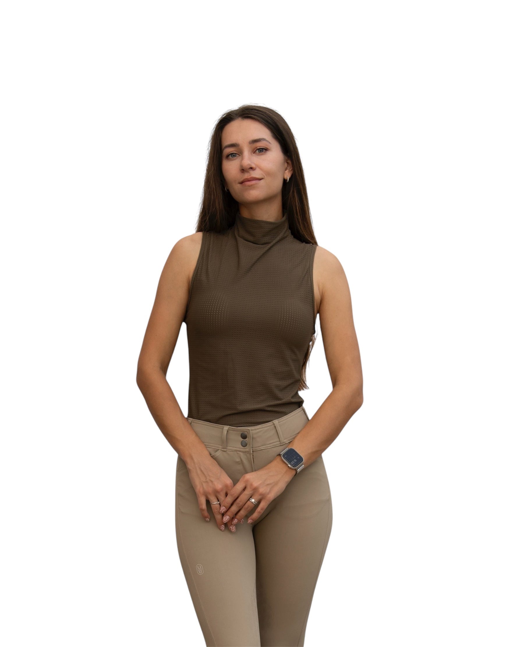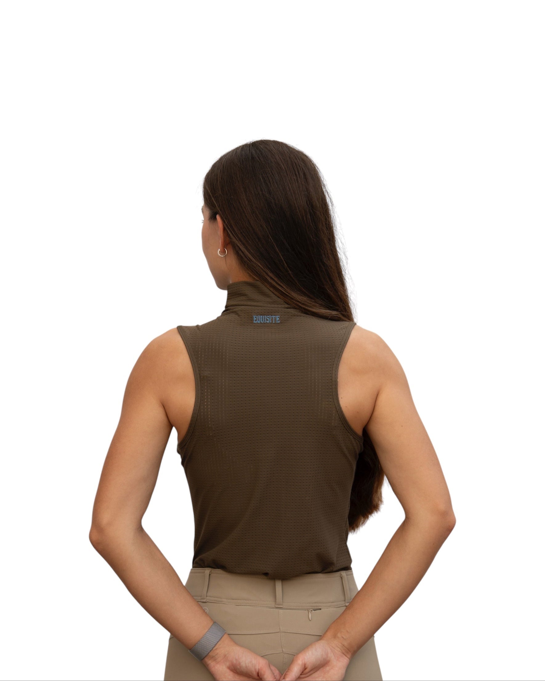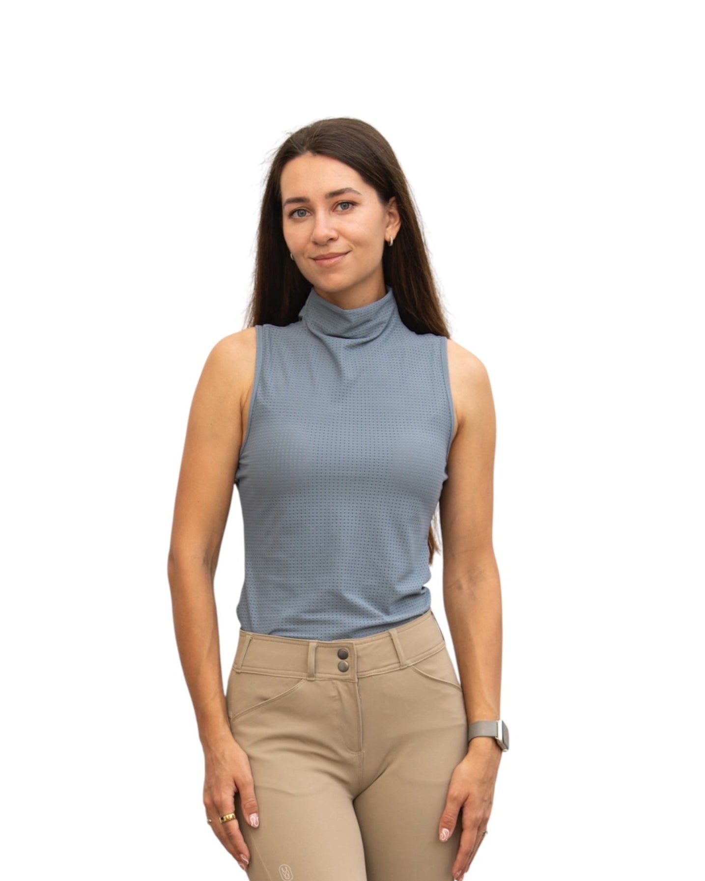 The Blaire Shirt—our perforated sleeveless mockneck—redefines comfort with its ultra-soft, milky-smooth fabric that feels like a second skin. Designed for ultimate breathability, its sleeveless style keeps you cool while offering unrestricted movement in and out of the saddle. Available in White, Agave, Powder Blue, and Jet Black, and is made from 80% Nylon, 20% Spandex.