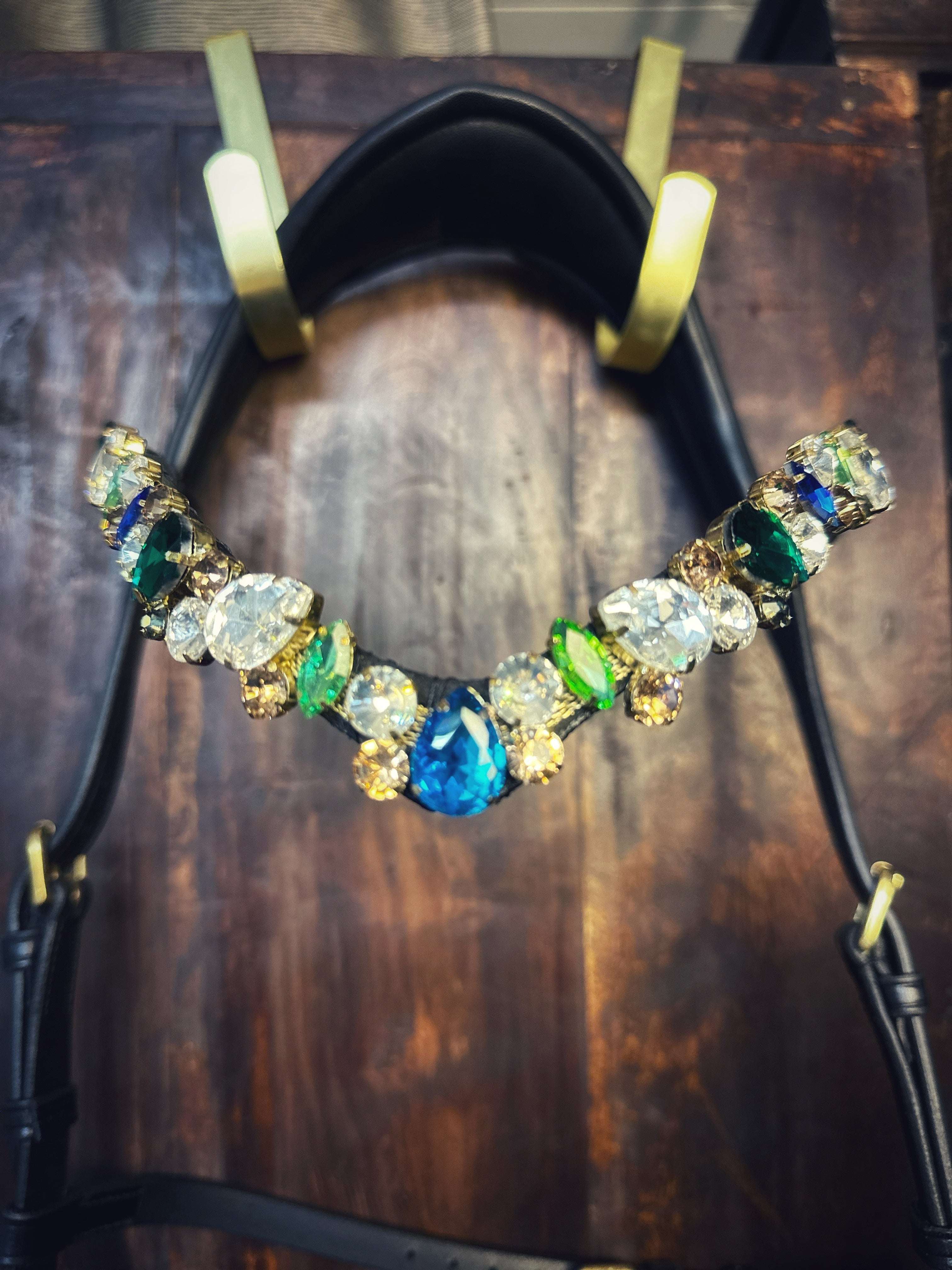 Introducing our exquisite headband adorned with multi-colored stones in various sizes. Crafted from premium Italian leather, this headband enhances your equestrian gear while adding a touch of elegance and personality.