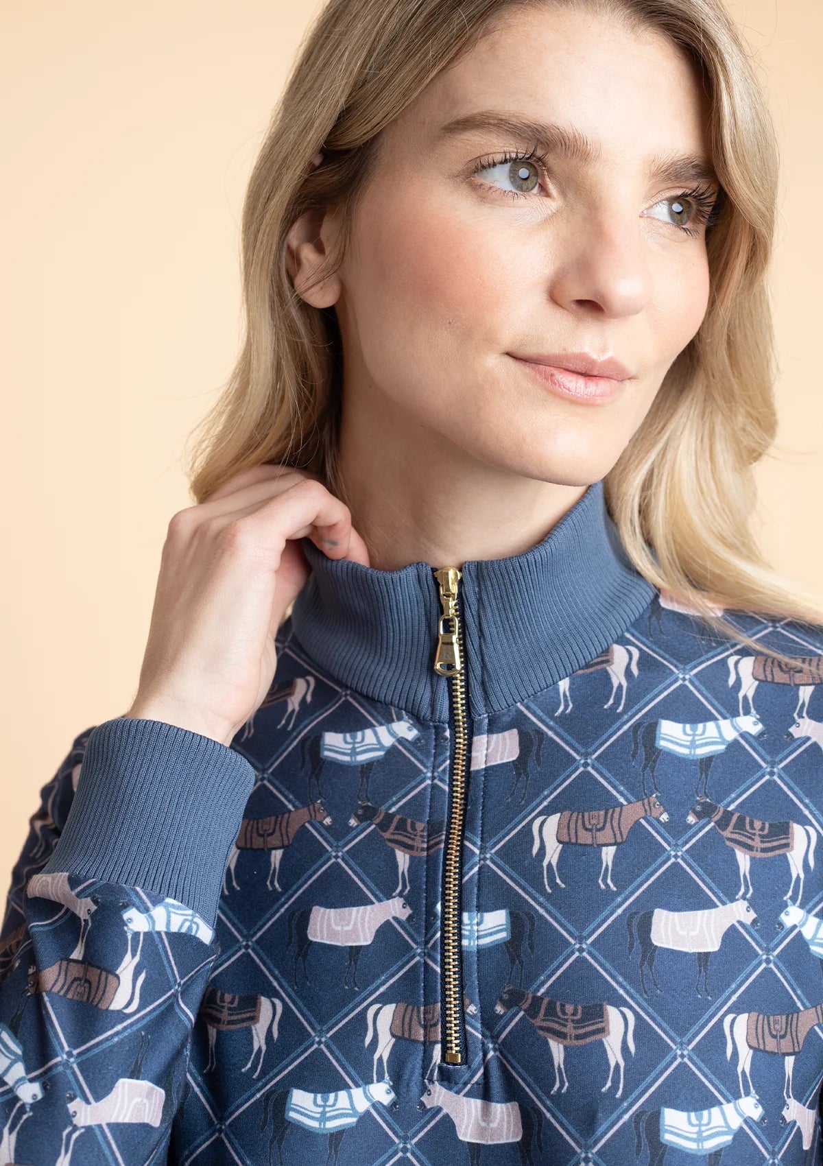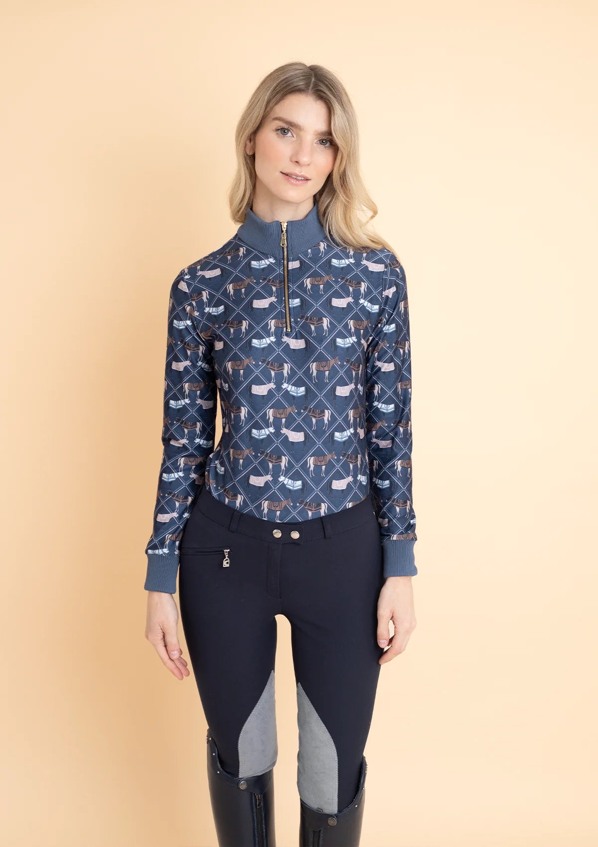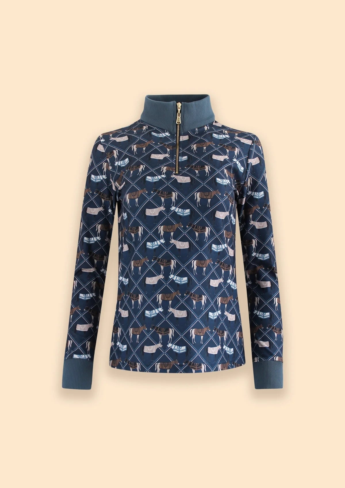 Rönner Emberly Q-Zip Medium Weight | Long Sleeve | Victory Print | Nav – Equiluxe Tack