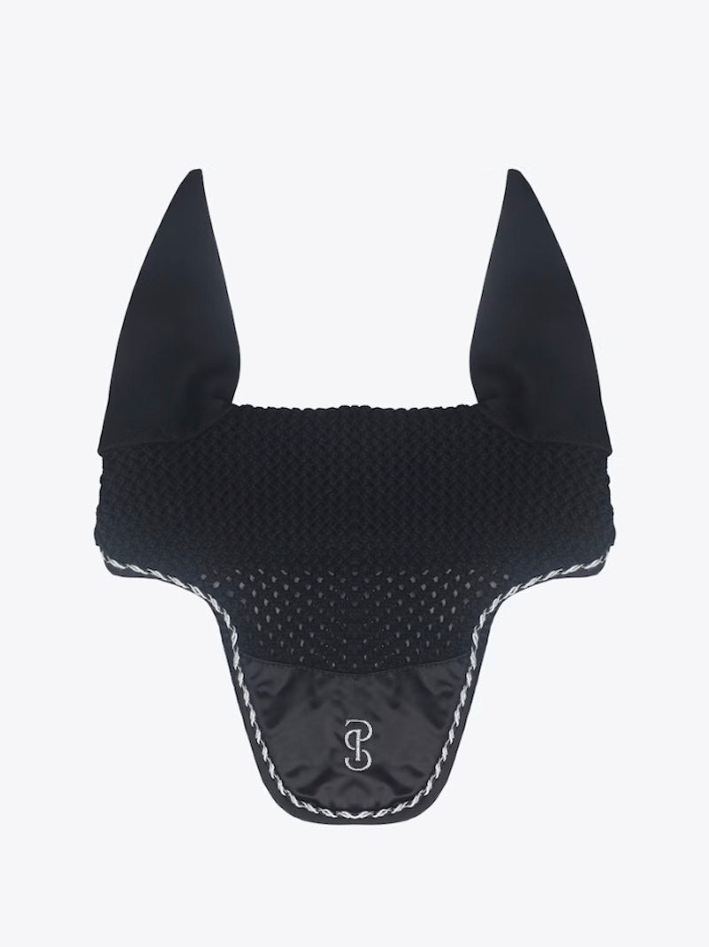 This ear bonnet with its elastic ears has been hand-knitted in a fashion that provides a secure, custom fit. To complete the look, it is decorated with an elegant array of details from its accompanying collection, with the recognizable PS logo emblem placed on the front.