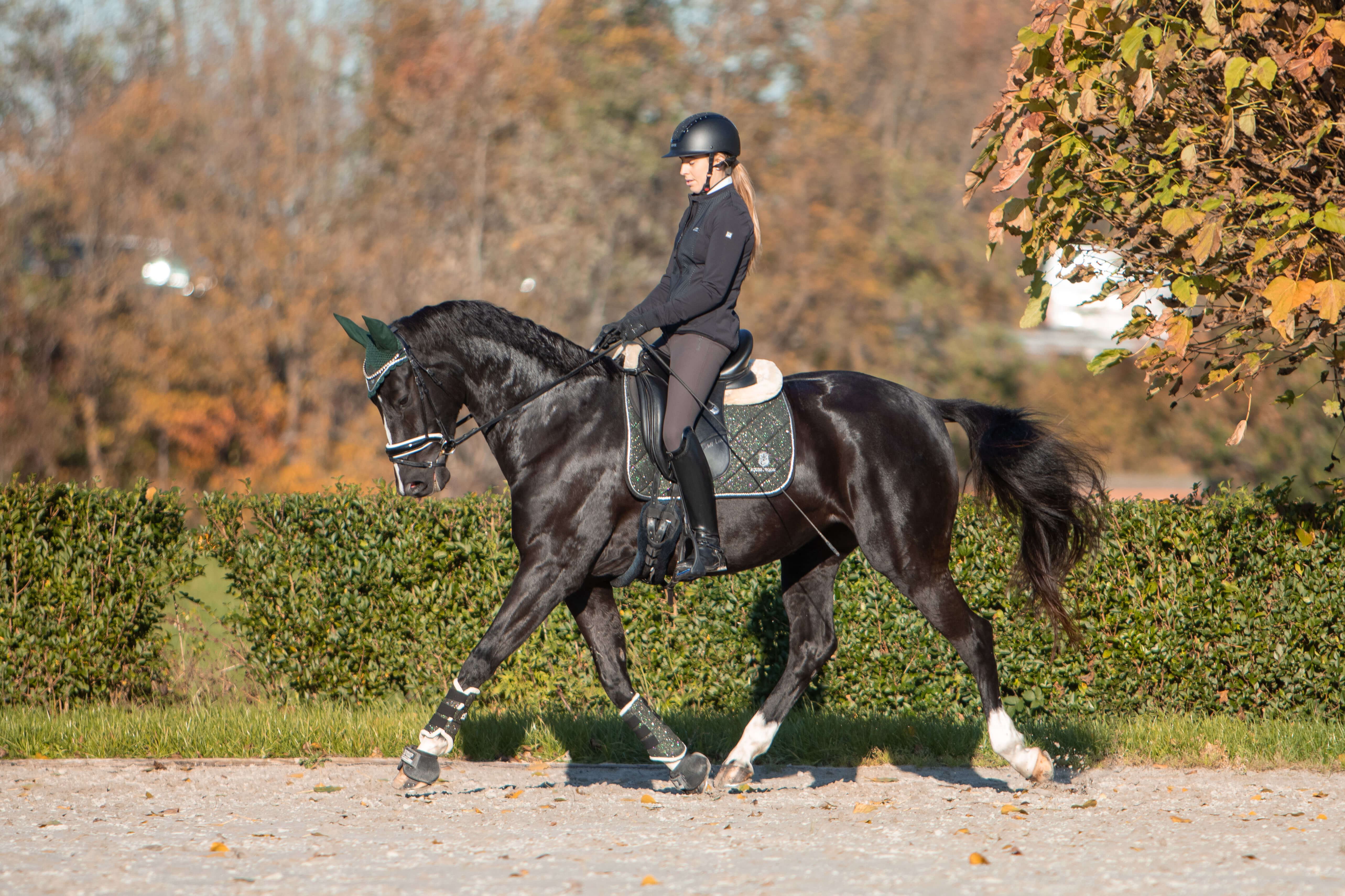 Extra thick padding will ensure comfort for your horse's back. Padded with high-quality faux fur, brushing boots will protect the legs during the ride.