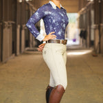 These sleek knee patch breeches are made in 4 way stretch moisture wicking tech fabric, paired with tone-on-tone embroidery details and a silicone knee patch logo grip to give you comfort and support in the saddle. These breeches are performance built, and made to be comfortable and stylish while maintaining a classic show design.