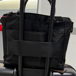 Carry your equestrian style to your work spaces and beyond in our NEW Tucker Tweed Office Tote. This nylon/leather upscale tote is a pocket powerhouse! Interior pockets for laptop, drink, phone, cords and more. Exterior completed with gunmetal hardware, matching zipper pockets both front/back and trolley sleeve. Includes adjustable shoulder strap.