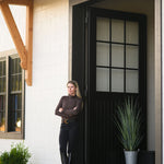 This turtleneck features a relaxed neck (no worries about it being too tight!), a solid front body, and a laser cut perforated back- complete with a tiny keyhole detail for a little extra feminine touch and an embroidered logo on the neck.