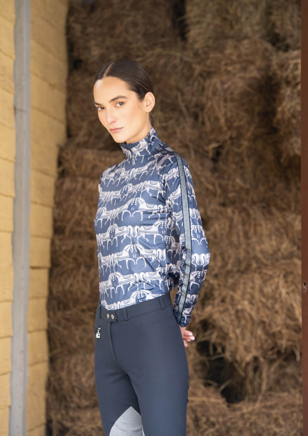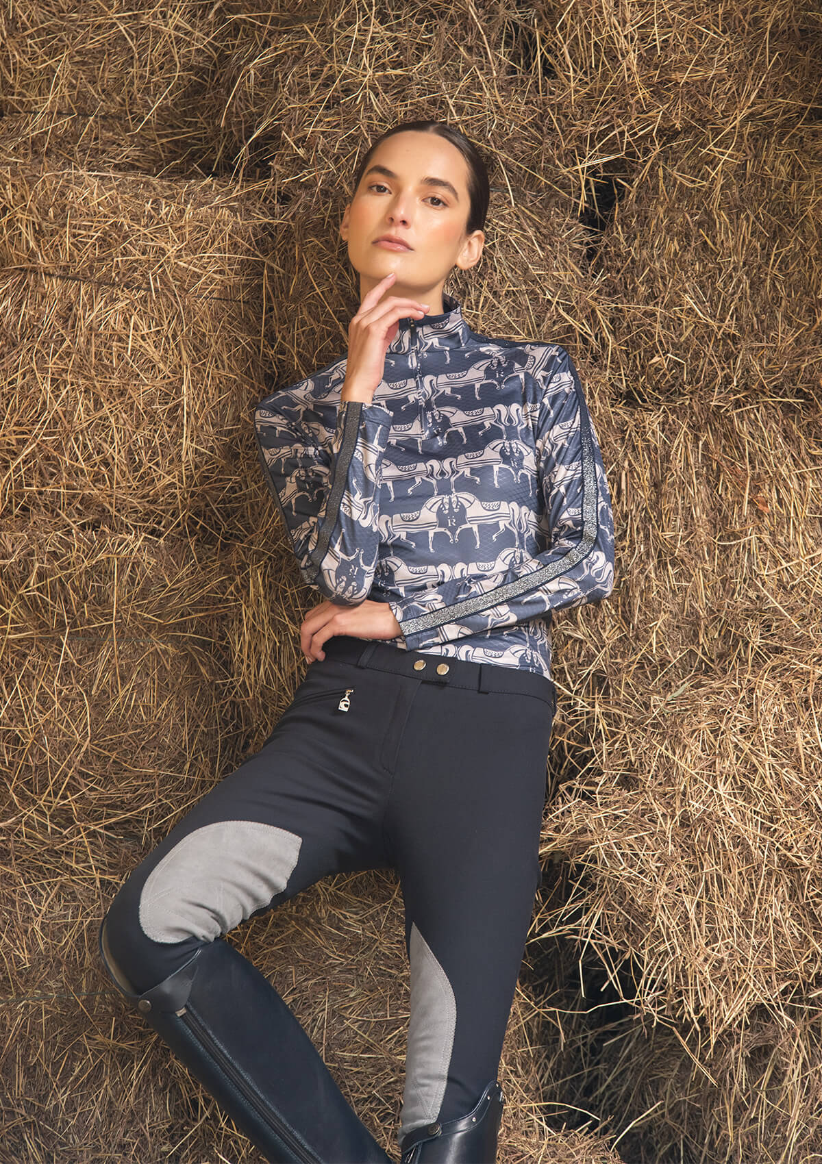 Rönner Plume Quarter - Zip | Long Sleeve | Steed Print | Shadow Blue - Rönner - Equiluxe Tack