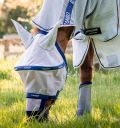 The Rambo® Fly Mask offers dual protection during summer turnout, offering the ultimate protection against flies and the damaging effects of sunlight. Our improved design gives optimum UV eye protection without impairing vision courtesy of our unique eye guard feature. This is a tough, yet flexible piece, meaning if your horse rubs on a tree the fly mask will move back off the face returning to its original form. This also gives extended room enclosed in a protective environment. The detachable nose protection gives you the flexibility to choose what suits your horse best and also protects sun sensitive muzzles from the sun’s harmful rays. The soft fleece edging ensures a comfortable fit for your horse all day long. Featuring generous fitting soft ears for ear protection and highly adjustable closures with elastic, this breathable fly mask from the Rambo® range allows your horse to graze comfortably and freedom from annoying insects. Presented under the trusted Rambo® brand, this fly mask delivers on performance and expectations. Fly-free field time that your horse will appreciate and the reassurance you look for in a fly mask. *Our Rambo® Plus Fly Mask Sizing Is Generous. We May Suggest Sizing Down For This Product.