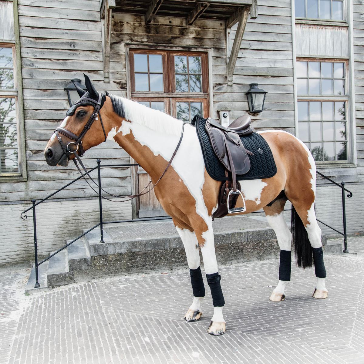 When your horse sweats a lot during workout, we advise you to wash your saddle pad more often as dried sweat can cause rubbing marks. The saddle pad velvet pearls is washable at 30 degrees. We advise you to use a washing bag to avoid the pearls from damaging. Do not tumble dry the saddle pad.