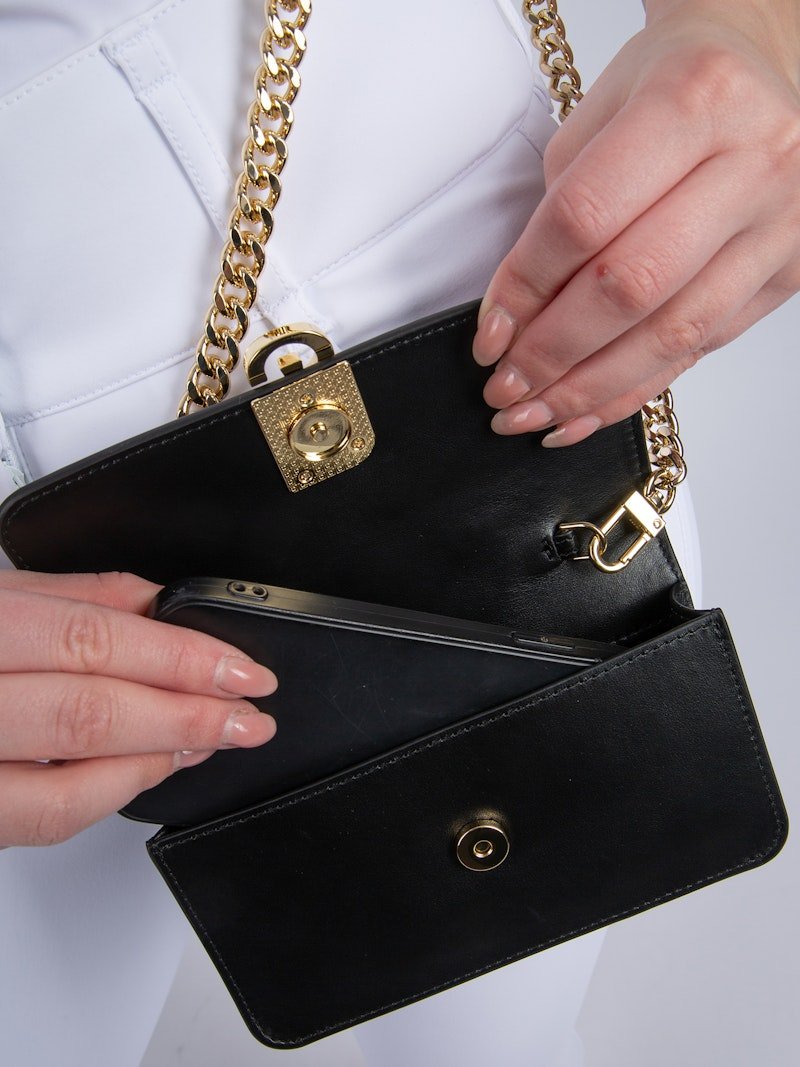 * Shoulder strap in a mix of real leather and a metal chain in gold finish. Debossed PS of Sweden logo on frontside.