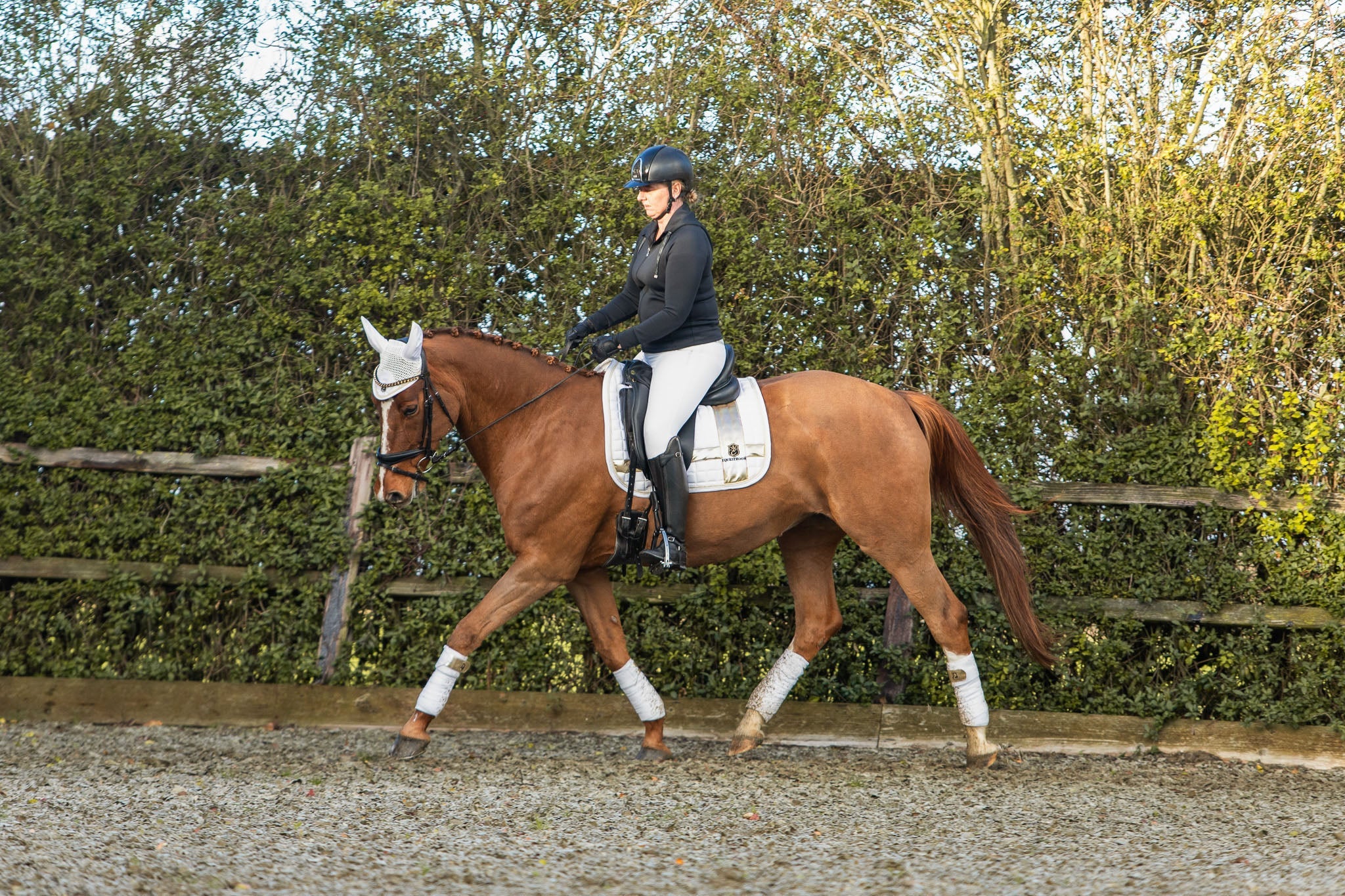 Designed to mirror the purity of freshly fallen snow, the Snowlight Saddle Pad Set will take your equestrian elegance to a whole new level. Embrace the winter enchantment with this limited design, shine like never before, and make your mark in your own style with confidence.