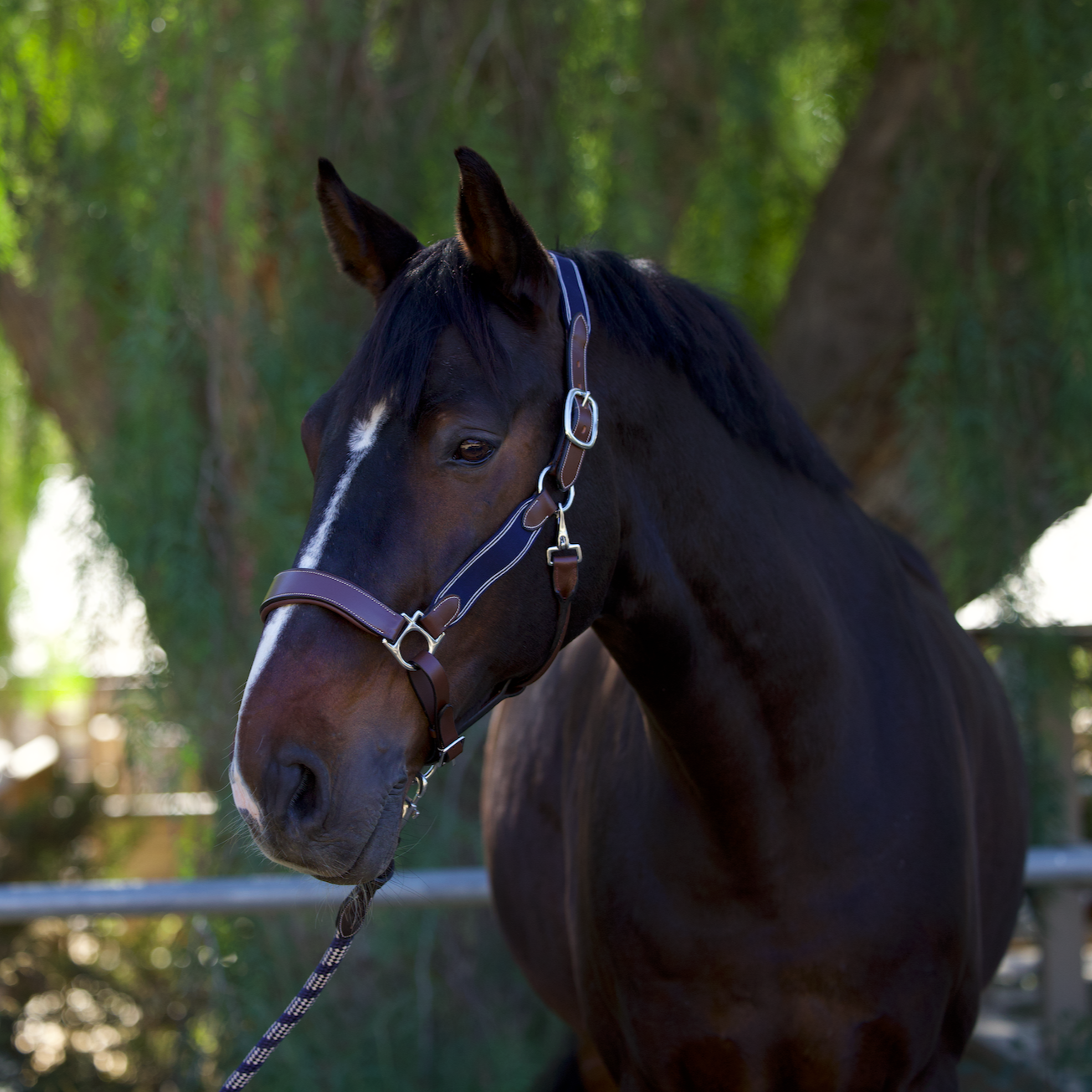 Elasticated headpiece and cheek-pieces, ensure the halter has the right amount of controlled stretch and can "move" with the horse, without that jolting sensation that can cause horses to panic in the trailer or cross ties which in turns reduces the risk of injury.