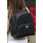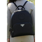 The Laguna Back Pack is the ideal bag for a day at the stables or a weekend horse show. Crafted from strong vegan leather, this back pack is extra roomy with a structured design that maintains its shape even when empty. It's spacious enough to hold all your weekend essentials and has a front pocket for your toiletries. From the barn to a weekend getaway, this back pack adds a touch of style. Contrast lining gives it a fashion flair.