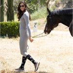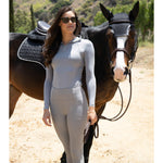 Enhance your equestrian attire with the Malibu Flattering Fit Leggings. Crafted from compression fabric and featuring a reinforced deep waistband, these full-seat leggings sculpt your figure and define your waist for an elegant profile. The silicone lining inside the waistband ensures your shirt stays perfectly in place, while spacious deep phone pockets offer practical storage. Finished with a silicone full seat, they come in multiple sizes and colors to complement the Malibu Base Layer collection.