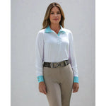 The Melrose Show Shirt offers a perfect blend of form and function. Crafted from temperature-regulating Sync-Tech material, it keeps you cool in the summer heat and comfortable in cooler temperatures. The flattering fit accentuates your figure, and can be worn as an all white show shirt but when the cuffs and collar are turned back the signature 'LA Equestrian' print adds a pop of color. Available in a range of sizes and colors.